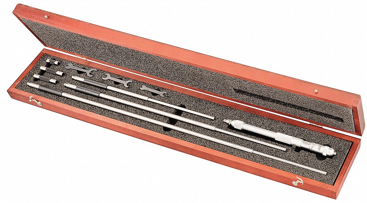 starrett offers a variety of micrometers for precise measurements of external and internal dimensions, depths, thicknesses. our inside micrometers are known for their accuracy and durability and with the addition of accessories they become even more versatile. they are very useful for measuring inside diameters of cylinders and rings, measuring parallel surfaces, etc. The desired range is obtained by assembling rods and spacing collars to the micrometer head. electronic and mechanical inside micrometers measure internal dimensions like internal diameters in 1 increments to.